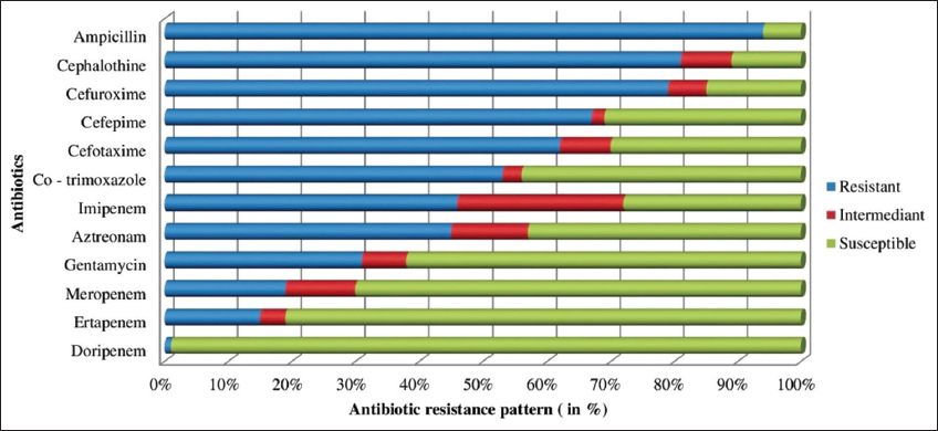 AMP: Ampicillin, AT: Aztreonam, CPM: Cefepime, CTX: Cefotaxime, CXM: Cefuroxime, CT: Cephalothine, COT: Co–trimoxazole, DOR: Doripenem, ETP: Ertapenem, GEN: Gentamycin, IMP: Imipenem, MRP: Meropenem.