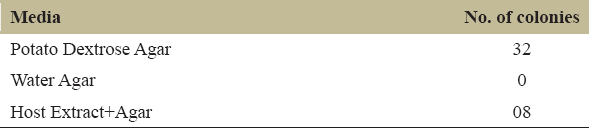 Table 1: Isolation of endophytic yeast from the seeds of C. annuum L. in different media.