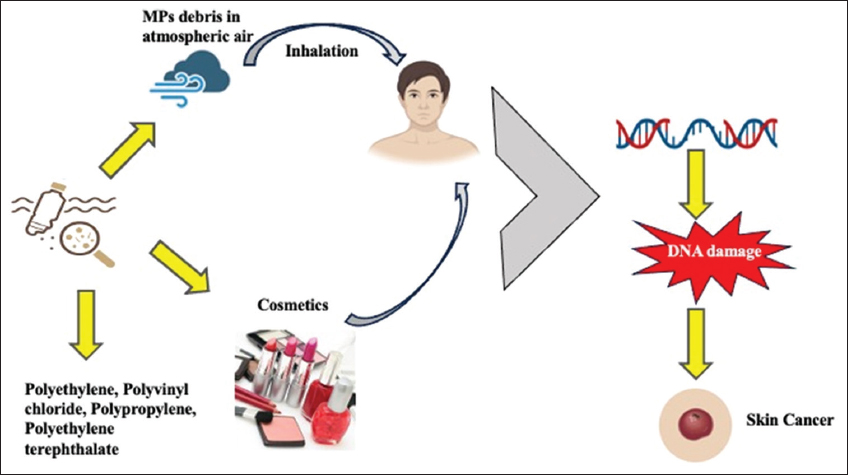 | Figure 3: Schematic representation depicts the pathways of microplastics in the human skin. [Click here to view] |