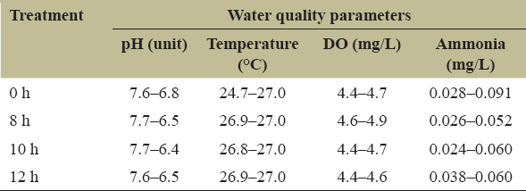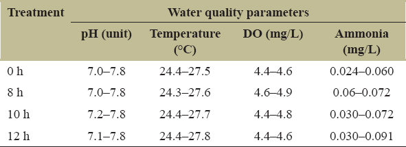 Table 2: Water quality in the guppy fish (Poecilia reticulata) rearing media.
