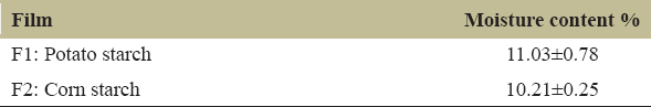 Table 2: Moisture content of the starch biofilms.