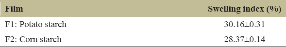 | Figure 7: Swelling Index of the Starch Biofilms. [Click here to view] |