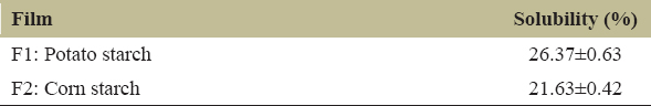 Table 4: Solubility of the starch biofilms.