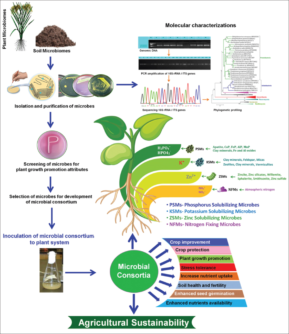 | Figure 1: Microbial consortia as an untapped resource for enhancing plant growth and agricultural sustainability. Adapted with permission from Negi et al. [1]. [Click here to view] |
