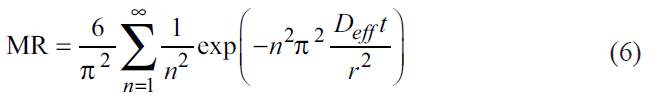 When the drying time is long (n = 1), equation 6 can be simplified by taking the logarithm of both sides to form a straight line equation (8) [36].