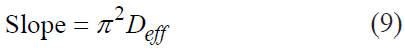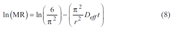 The effective moisture diffusion was determined by plotting the experimental ln(MR) against (t/R2) because the graph gives a straight line with a slope according to equation 9 [37].