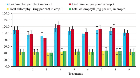 | Figure 4: Effects of Enterobacter mori cjy13 and Streptomyces globosus CAU 1564 on average leaf number and total chlorophyll at 65 days after sowing (DAS) in both experimental years. Total chlorophyll and leaf number were monitored on 20 plants per replicate at 65 DAS for both 2024 and 2025. [Click here to view] |