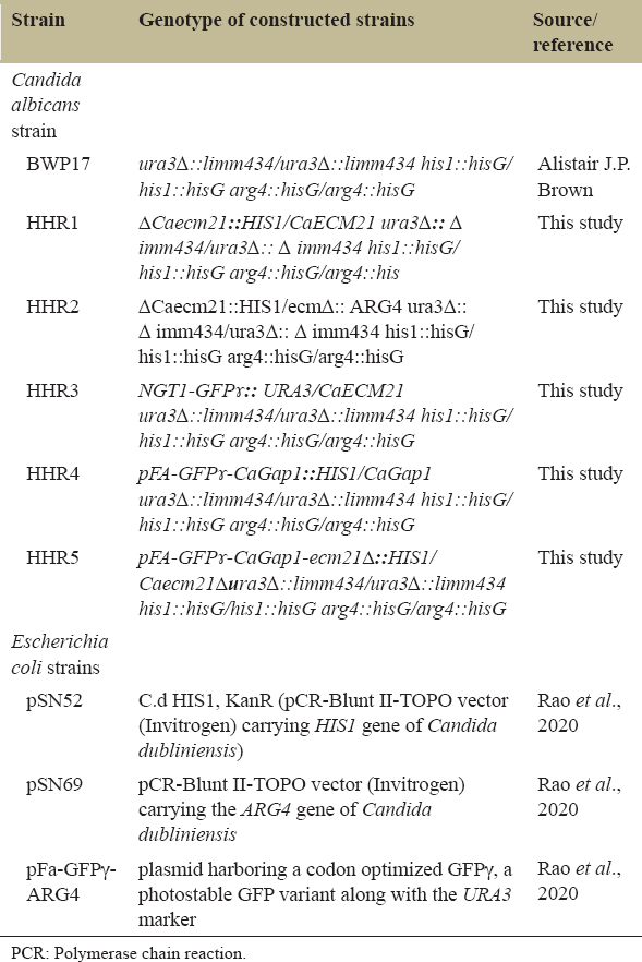 Table 1: List of strains and plasmids used to prepare ?/?CaECM21.
