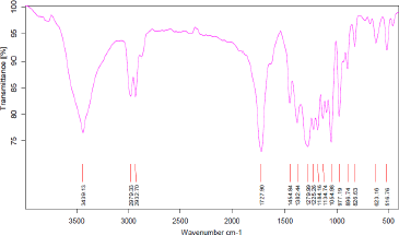 | Figure 3: FTIR spectra of purified copolyester P(3HB-co-3HV) produced by the endophytic isolate B. cereus RCL 02. [Click here to view] |
