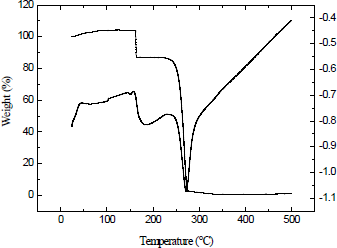 | Figure 5: Thermogravimetric analysis of purified copolyester P(3HB-co-3HV) produced by the endophytic isolate B. cereus RCL 02. [Click here to view] |