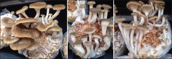 ![]() | Figure 10: Fruiting bodies of Lentinus swartzii growing on fruiting bags containing 7:3 substrate formulation. [Click here to view] |