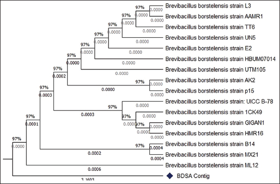 16S rDNA sequencing is particularly useful in identifying bacteria that are difficult to identify by conventional methods and identification of “routine” bacterial strains is most useful in the context of bacterial species. Phylogenetic tree is shown in Figure 2.