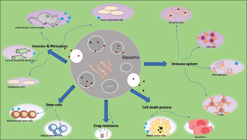 | Figure 3: Role of exosomes in breast cancer. [Click here to view] |