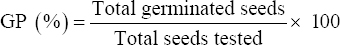 For viability retention seeds of F. palmata collected at maturity were stored under two conditions in airtight plastic containers placed at room temperature (during day18–26°C and night 3–13°C) and refrigerator (1 and 3°C) [1]. The viability was checked by germinating 3 replicates of 100 seeds every 30 days up to the time seeds germinated (in both year-1 and year-2) [19].