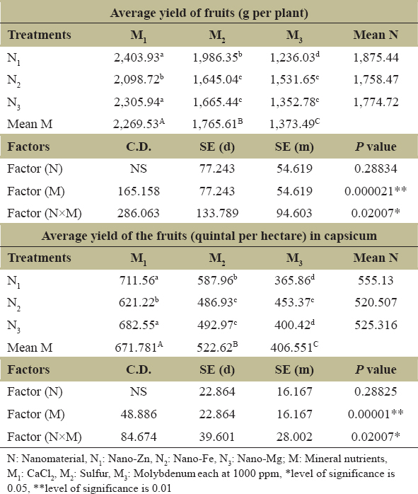 | Average yield of the fruits (quintal per hectare) in capsicum | ||||