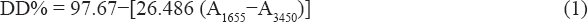 Where DD is DD (%), A1655 is the absorption value at a wavelength of 1655 cm-1, and A3450 is the absorption value at a wavelength of 3450 cm-1.