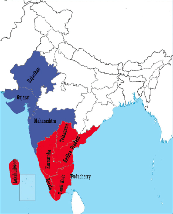 | Figure 1: South and West Indian states from which the samples were collected. [Click here to view] |