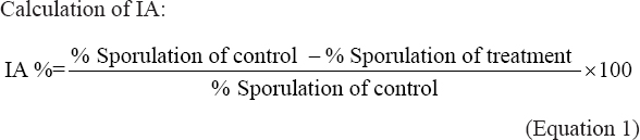 Based on the sporulation stage of cells calculated above, the IA of the product and chemicals was based on the calculation shown in Equation 1, described by Gadelhaq et al., and Samaha et al [9,20].