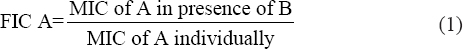 a FIC A: MIC of A in presence of B (μg/mL)/MIC of A alone (μg/mL),