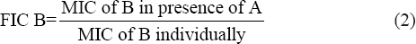 b FIC B: MIC of B in presence of A (mg/mL)/MIC of B alone (mg/mL),