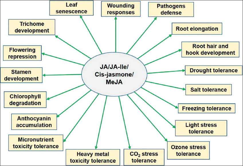 | Figure 2: A layout of the different potentials of jasmonic acid and its derivatives. [Click here to view] |