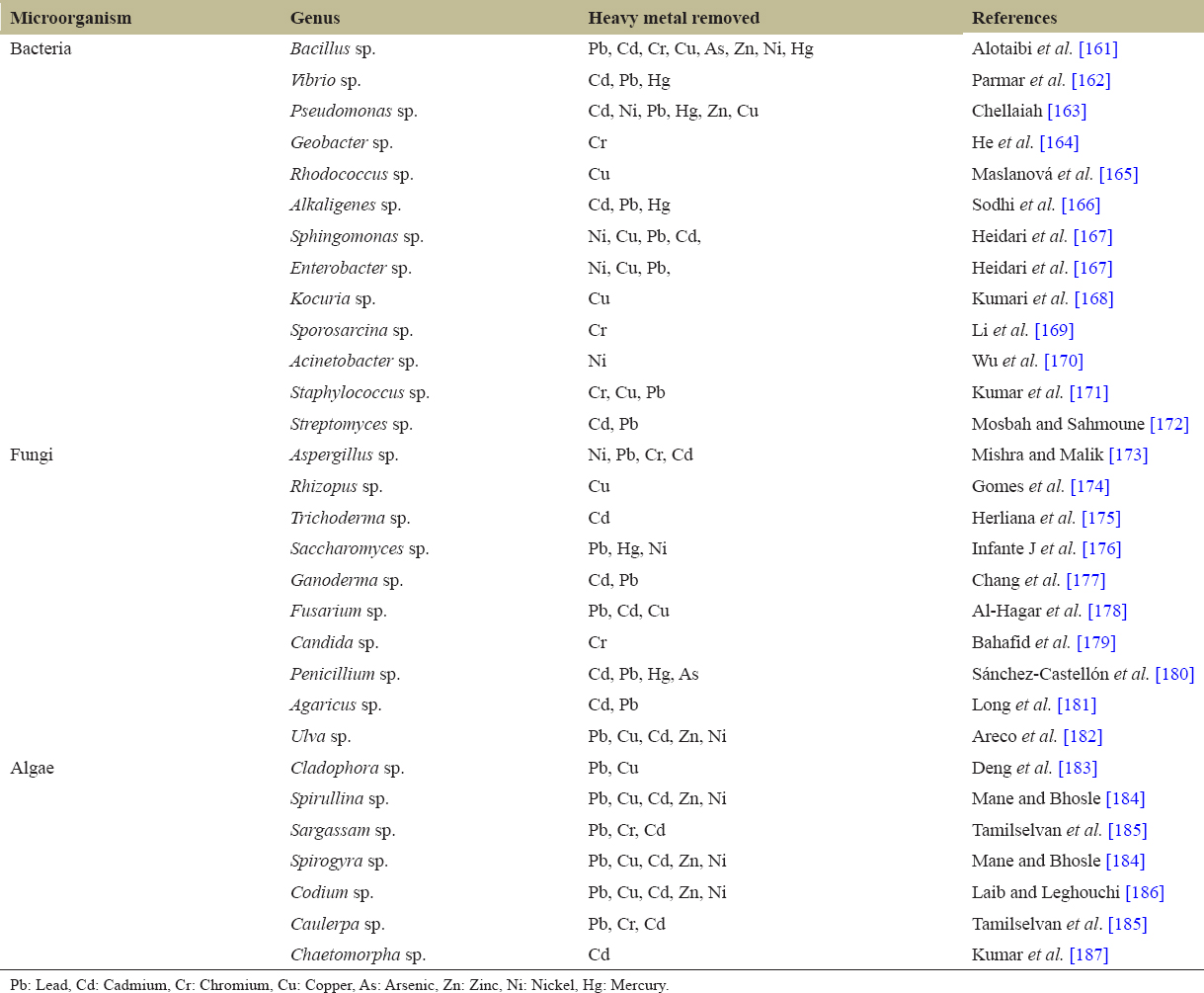 Table 1: List of microorganisms associated with heavy metal remediation.