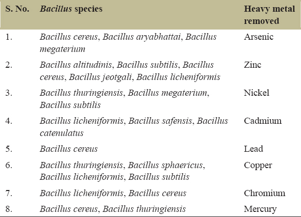 Table 2: List of Bacillus sp. associated with heavy metal remediation.