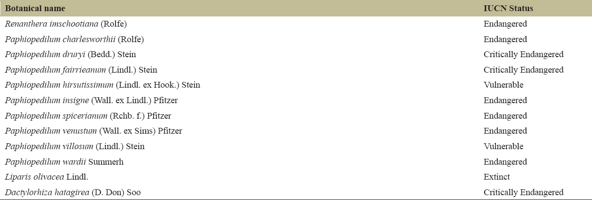 26. De LC, Rao AN, Singh DR. Endangered orchids and their conservation in North East India. In:Bioprospecting of Indigenous Bioresources of North-East India. Germany:Springer;2016. 61-75. [https://doi.org/10.1007/978-981-10-0620-3_5]