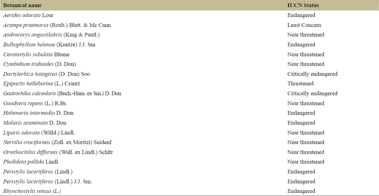 | Cymbidium iridioides (D. Don) | Near threatened |