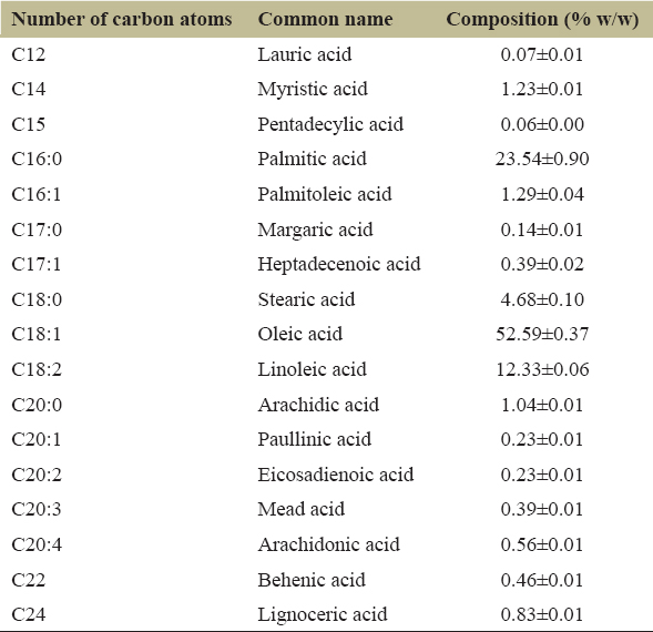 | C20:0 | Arachidic acid | 1.04±0.01 |