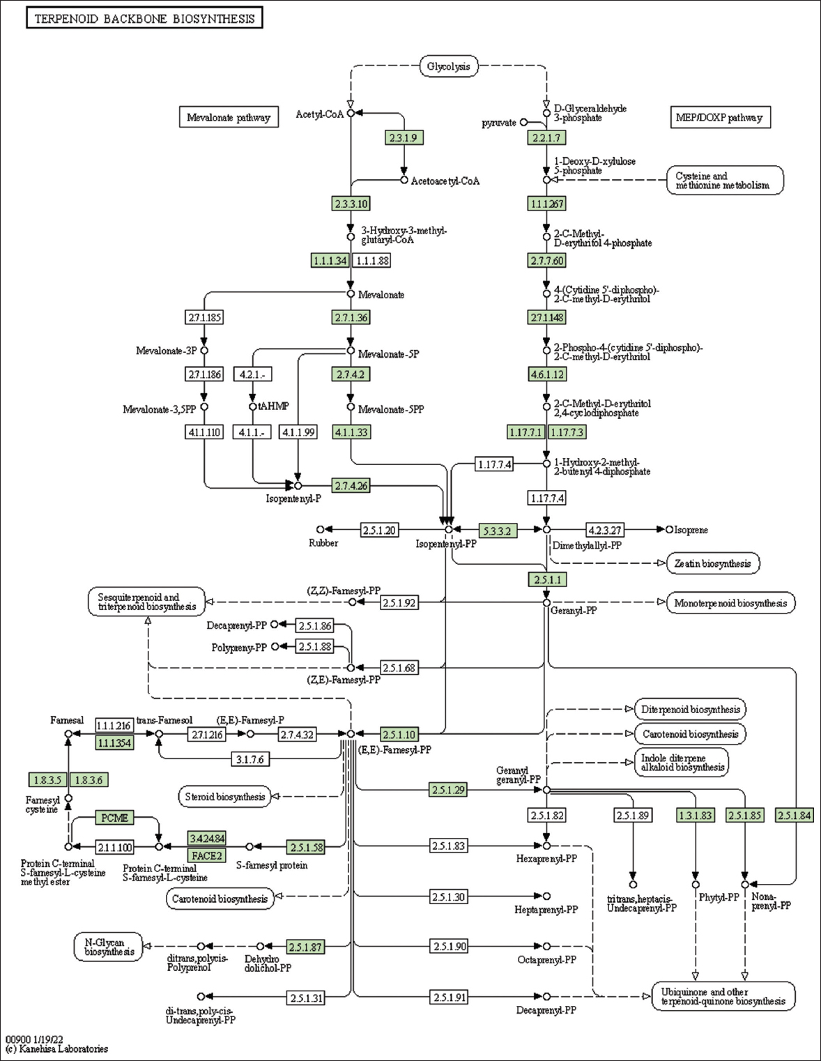 Supplementary Table 6: Identification of methylerythritol phosphate (MEP) and mevalonic acid (MVA) genes in lemon grass