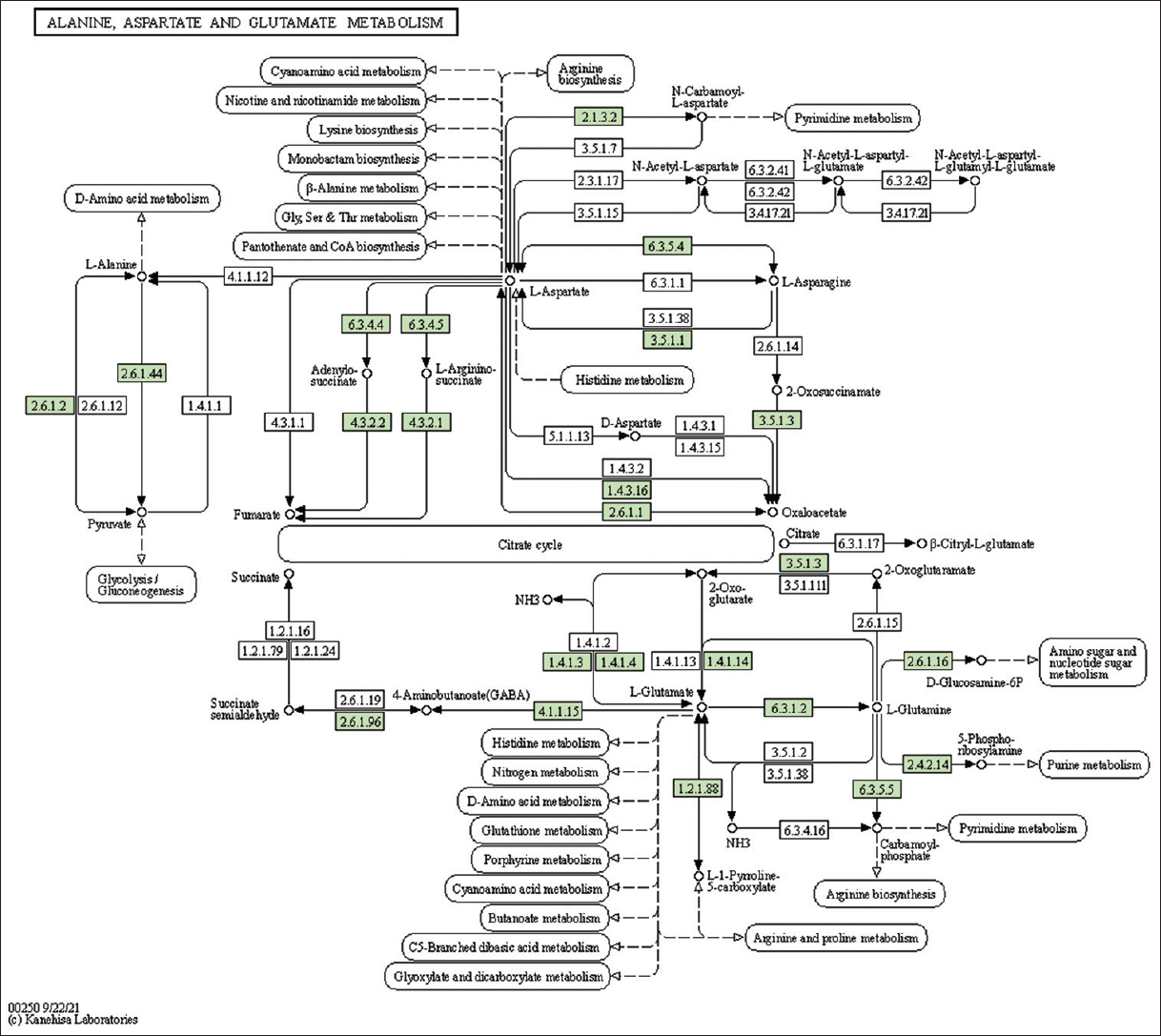 | 10 | 250 | Alanine, aspartate and glutamate metabolism | 27 |