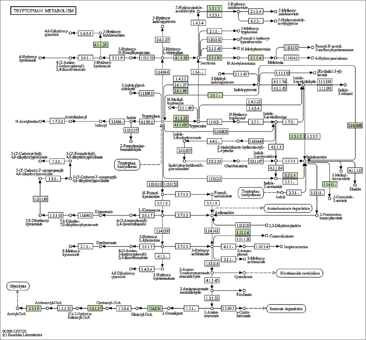 | 22 | 380 | Tryptophan metabolism | 15 |