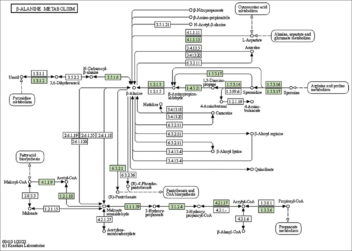 | 23 | 410 | beta-Alanine metabolism | 15 |