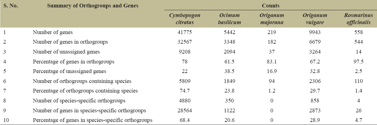 Supplementary Table 4: The summary of orthogroups and genes in lemon grass as revealed by the orthologous analysis