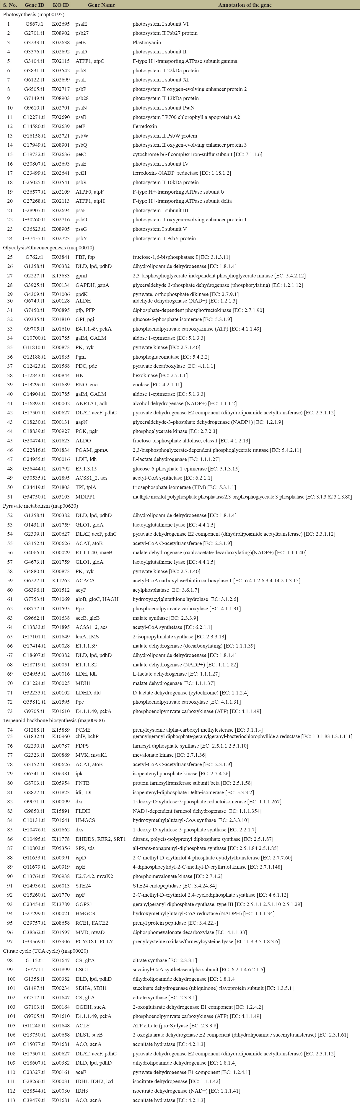 | S. No. | KO ID | Metabolic pathways | Number of genes |