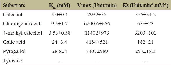 Table 2: Substrate specificity of polyphenol oxidase from Mediterranean palm heart.
