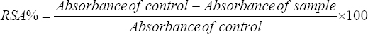 | Figure 6: Radical scavenging activity (RSA) of fungal pigment crude extract of Fusarium solani. [Click here to view] |