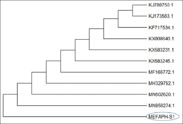 | Figure 2: The phylogenetic tree of the isolated strain MEFAphS1 and other fungal relatives based on neighbor-joining analysis of ITS sequences. [Click here to view] |