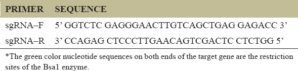 Table 1: Primer sequence of sgRNA (forward and reverse) with restriction sites.