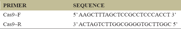 Table 3: Primer sequence of Cas 9 (forward and reverse).