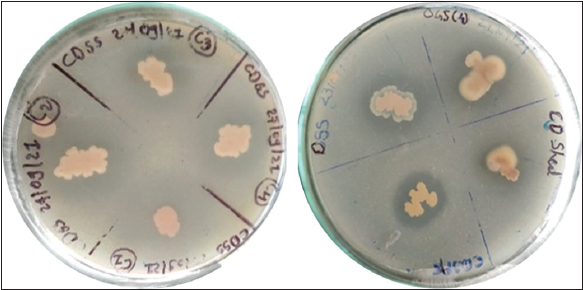 Subsequently, the top 13 isolates demonstrating hydrolysis efficiency exceeding 50% were selected for further investigation via quantitative enzymatic assays [Figure 2]. Based on both plate assays and quantitative enzymatic assays, two isolates, DSS and CDS, exhibited significantly higher phytase activity compared to the other isolates [Table 1]. Morphological analysis confirmed that both DSS and CDS isolates were gram-positive [Table 2].