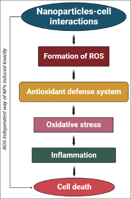 | Figure 2: A schematic representation of nanoparticles-mediated reactive oxygen species generation leading to cell death. [Click here to view] |