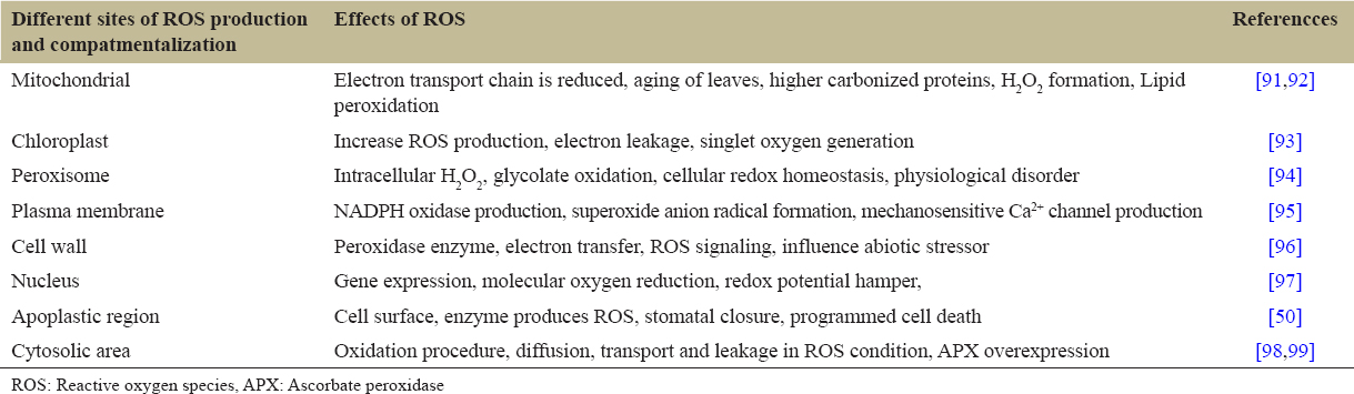 Table 1: Effects of ROS compartmentalization under abiotic stress.