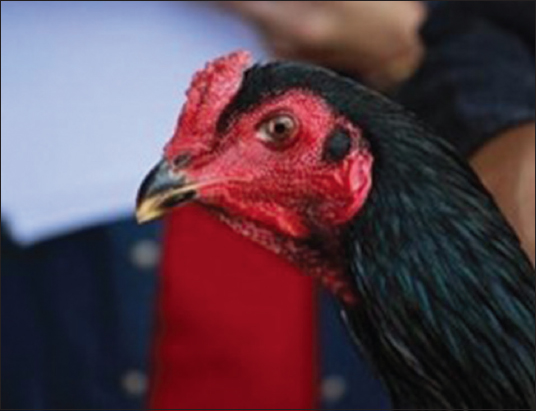 | Figure 1: Crested comb and red ear lobe. [Click here to view] |