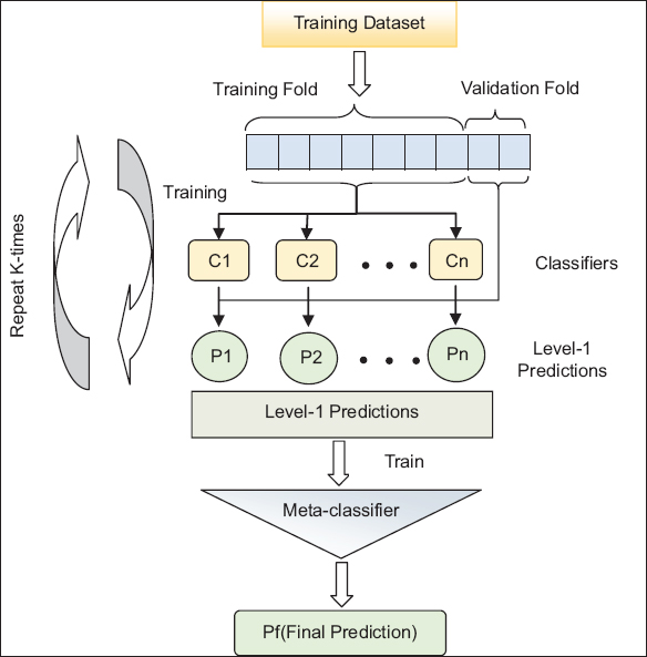 | Figure 2: The working procedure of the stacking CV classifier. [Click here to view] |