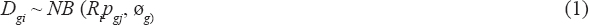 Here, Ri is the data size, D is the count of gene g in the ith sample, and pgj is the relative abundance of gene g in the jth experimental group to which sample i belongs. øg is the dispersion that shows the biological variation between the samples.