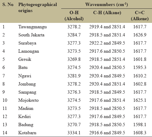 | S. No | Phytogeographical origins | Wavenumbers (cm-1) | ||