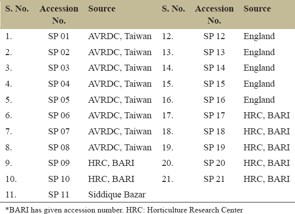 *BARI has given accession number. HRC: Horticulture Research Center