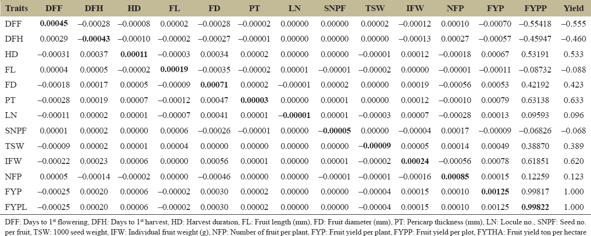 Table 3: Genotypic correlation matrix of selected traits for 21 sweet pepper genotypes.
